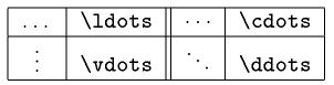 LaTeX propose quatre types de points de suspension résumés dans le tableau suivant: |